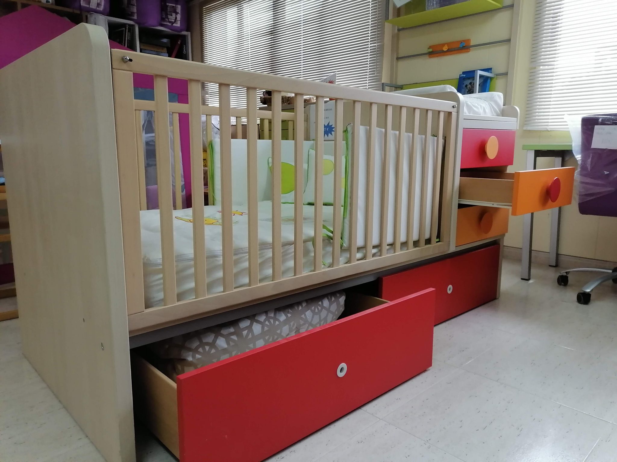 Cuna infantil compacte amb canviador , calaixera de tres calaixos i dos calaixos de gran capacitat.