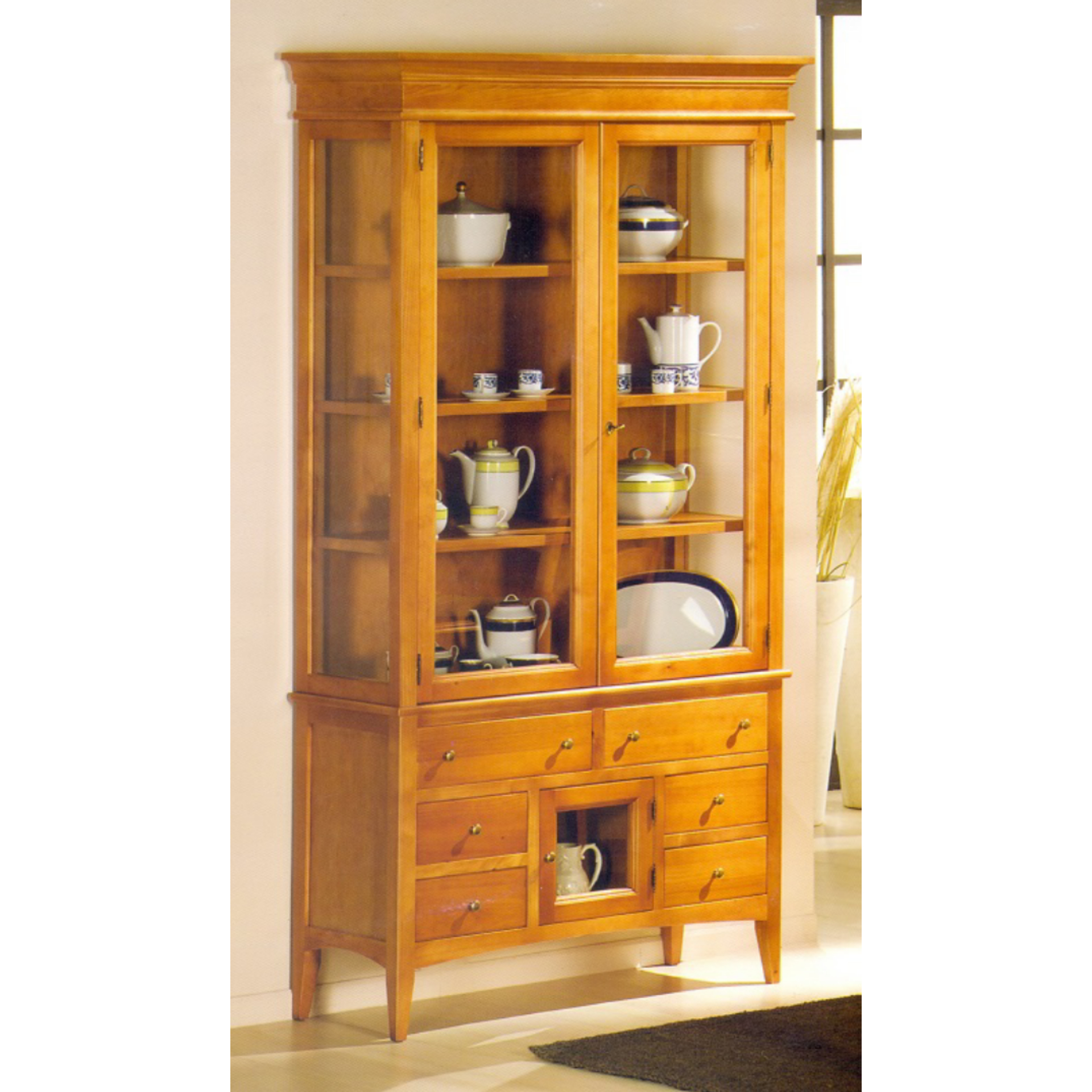 Vitrina alta con 2 puertas de cristal y 6 cajones.