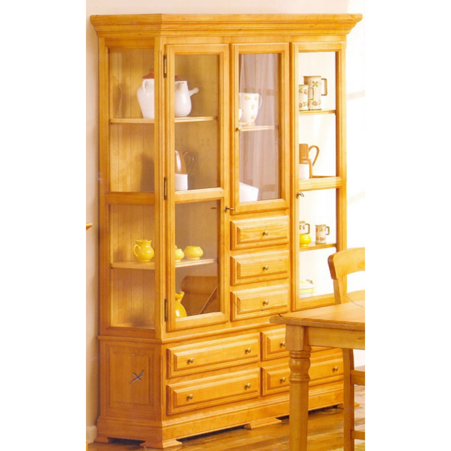 Vitrina con 3 puertas de cristal y 7 cajones.