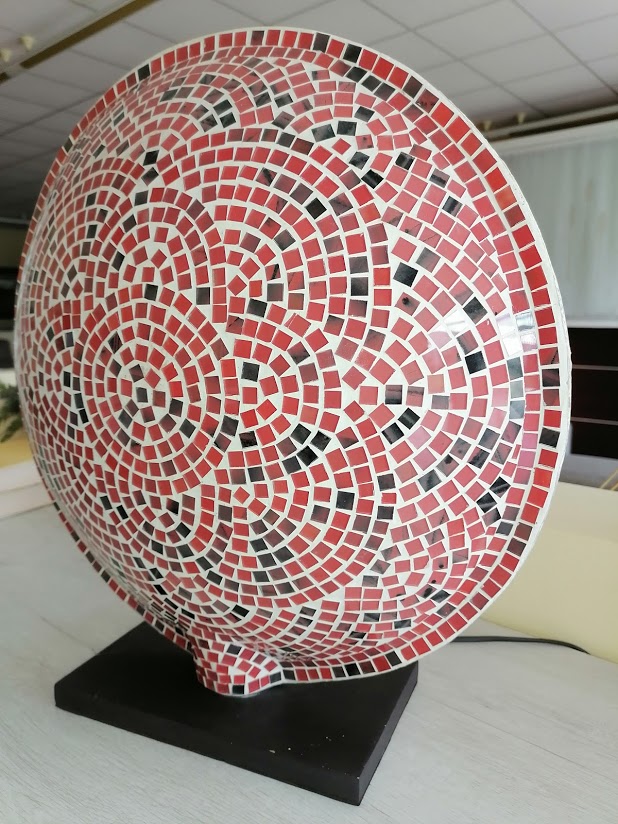 Lampara decorativa amb forma rodona amb vidres de colors vermellosos