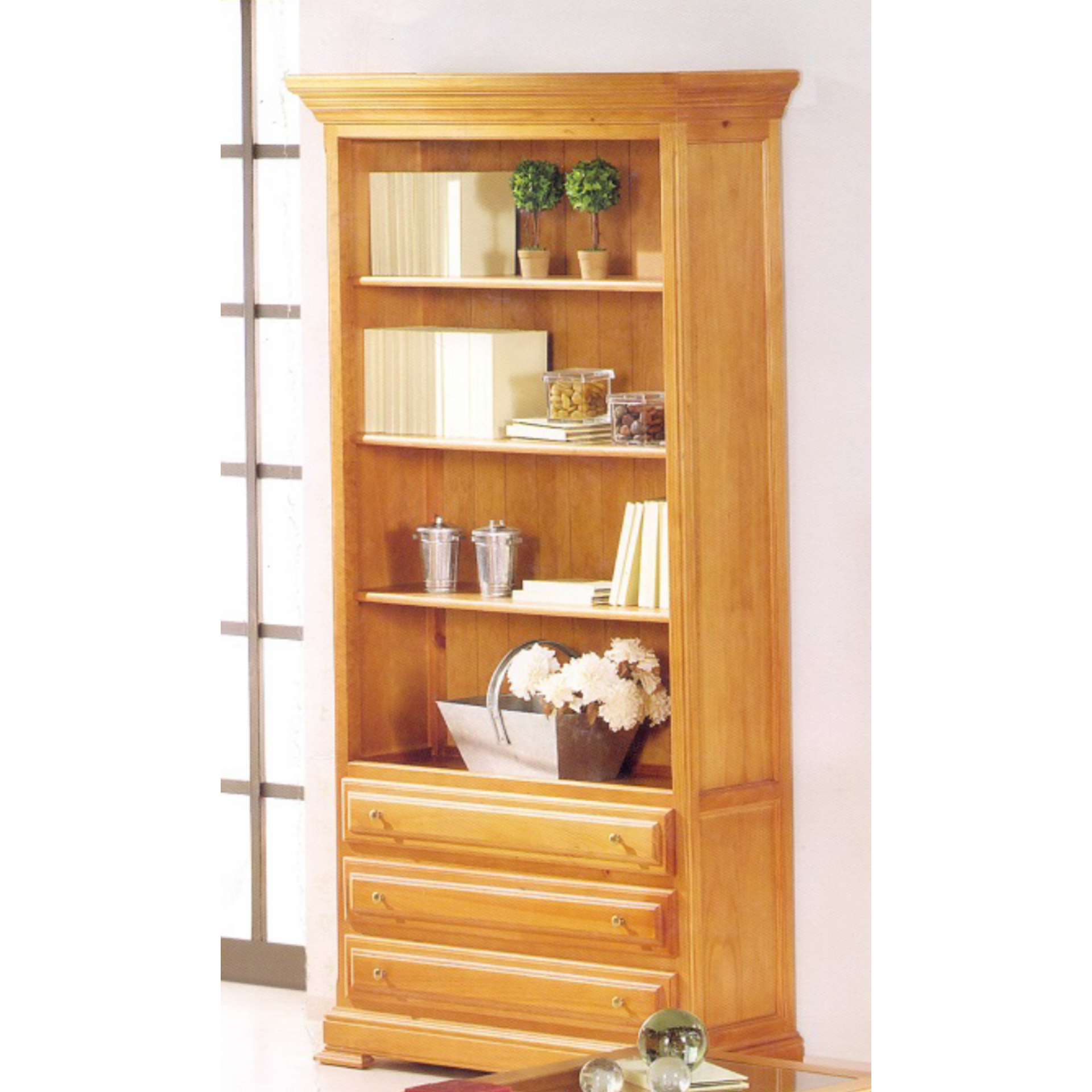 Llibreria alta amb 3 calaixos.