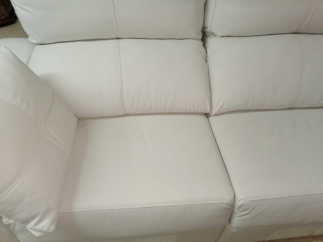 Sofà de pell blanc amb chaiselongue de 170 cm.